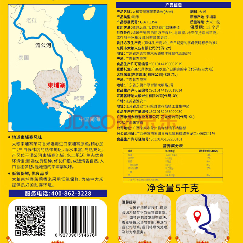 商品相册:太粮柬埔寨茉莉香米10斤 进口原粮 大米 长粒香籼米5kg第
