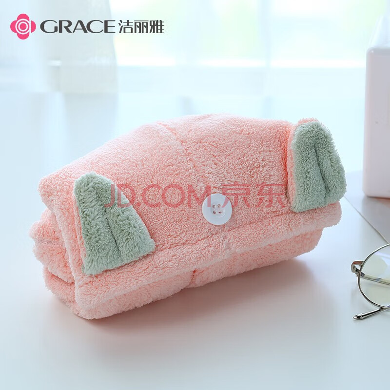 商品相册:洁丽雅(Grace)干发帽柔软强吸水干发帽 抗菌包头速干擦头雪花绒毛巾 猫耳朵浅粉第