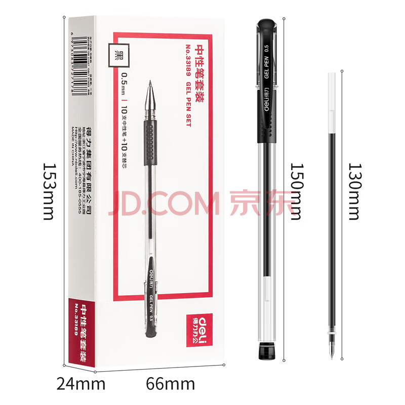 商品相册:得力(deli)拔帽办公中性笔套装 0.5mm子弹头 10支签字笔 10支笔芯 33189第