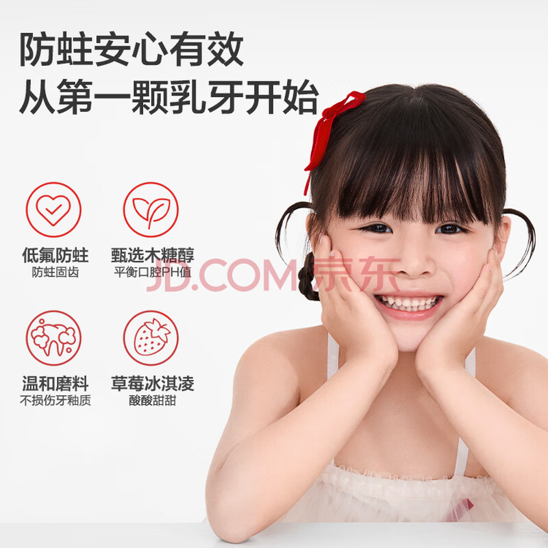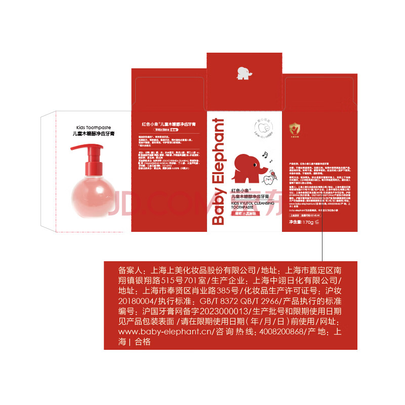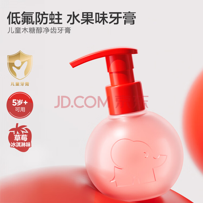 商品相册:红色小象 儿童宝宝牙膏1-12岁口腔清洁 木糖醇净齿牙膏草莓冰激凌味170g第
