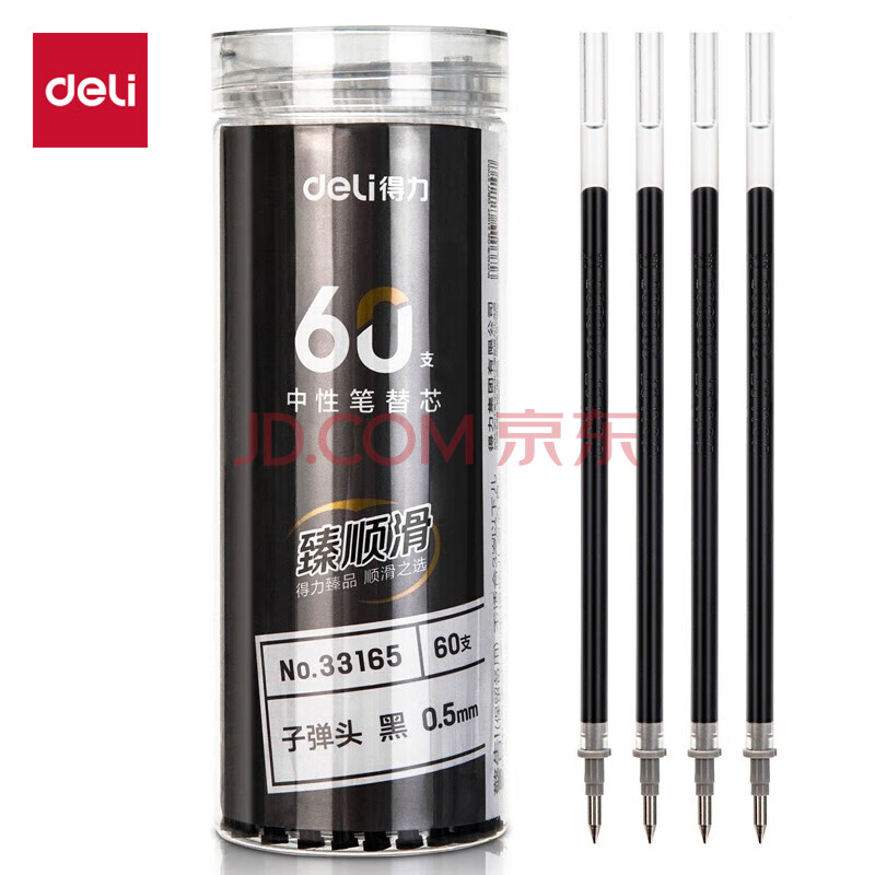 商品相册:得力(deli)【顺滑之星】臻顺滑中性笔芯签字笔替芯 办公用品 0.5mm子弹头60支/桶33165第