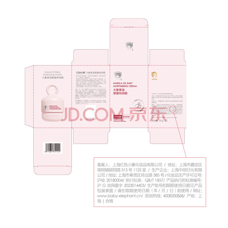 商品相册:红色小象大象果油婴童特润霜50g 儿童面霜宝宝面霜乳滋润保湿换季第