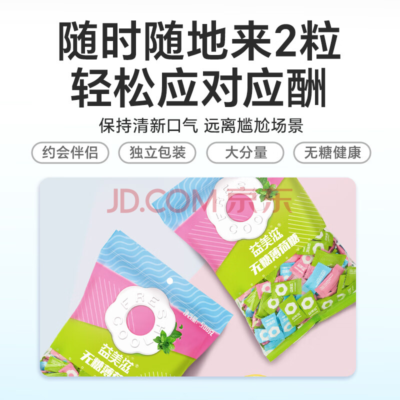 商品相册:I'MINT益美滋 无糖薄荷糖 500g 清新口气 休闲零食 前台餐饮招待糖果 口香糖第