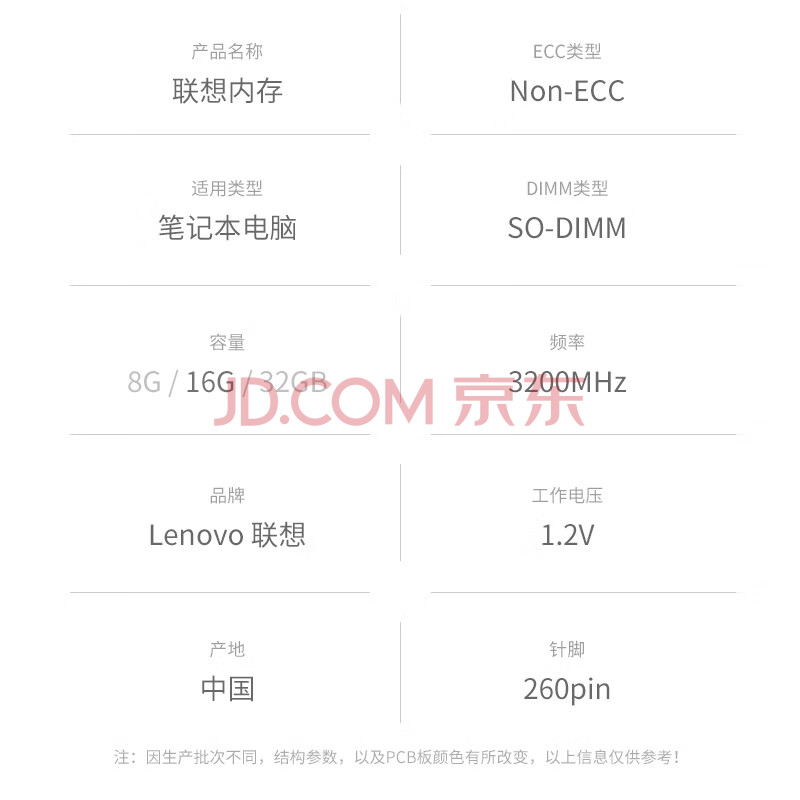 商品相册:联想(Lenovo)16GB DDR4 3200 笔记本内存条 第