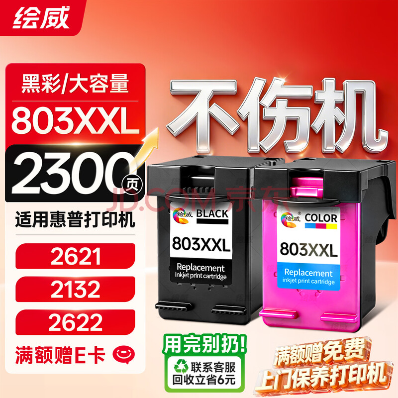 商品相册:绘威803XXL墨盒黑彩色升级可加墨 适用惠普HP Deskjet 1111 1112 2130 2131 2132 2623 2621 2622打印机墨盒第