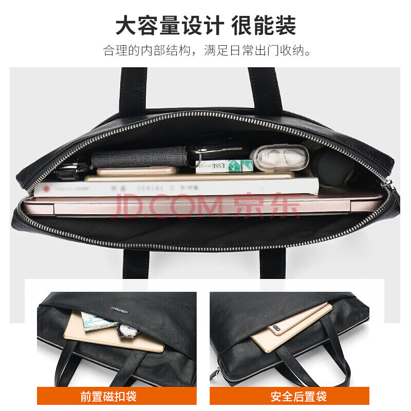 商品相册:稻草人男士公文包商务手提包办公文件出差律师休闲通勤14英寸电脑包第
