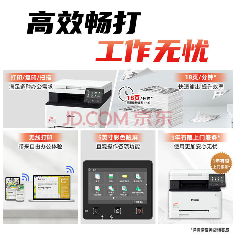 商品相册:佳能(Canon)iC MF641Cw A4幅面无线彩色激光多功能一体机(打印/复印/扫描/大容量进纸 商用家用)第