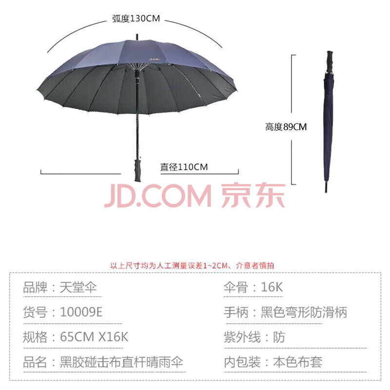 商品相册:天堂 长柄防紫外线晴雨伞加大强抗风直杆伞太阳伞65*16骨 云炭黑第