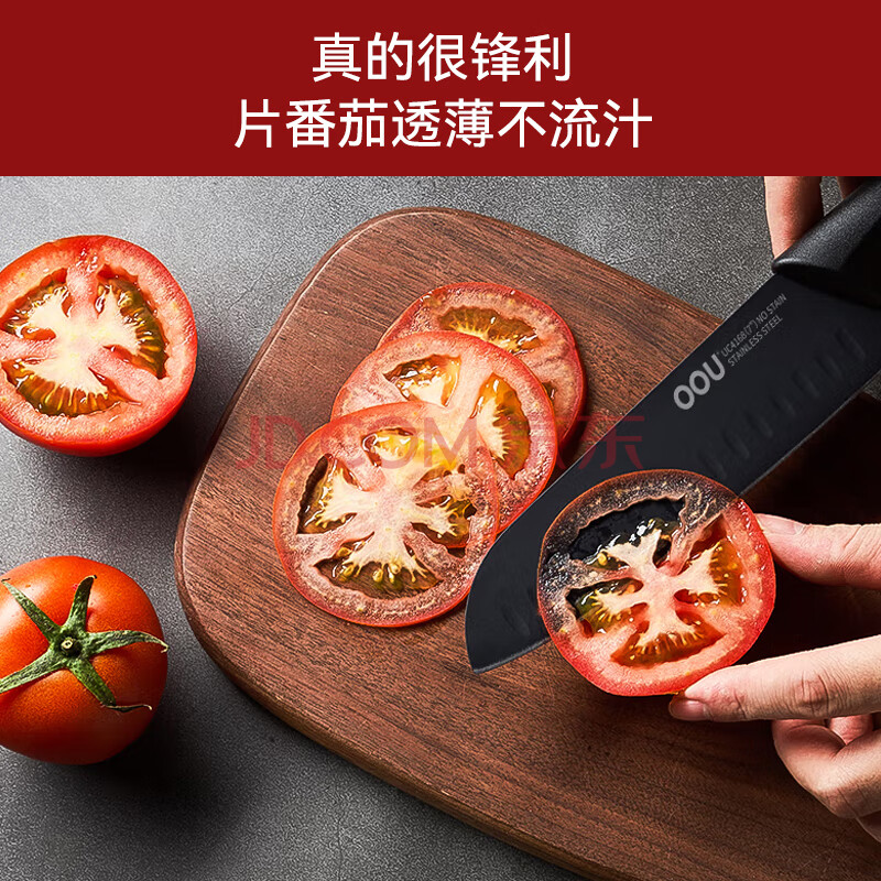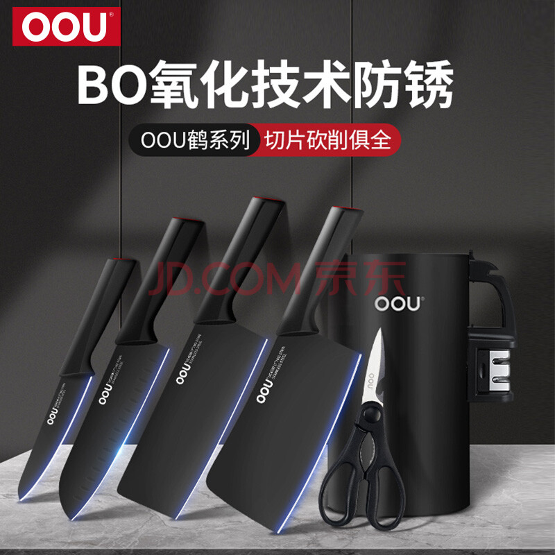 商品相册:OOU家用刀具套装厨房全套切菜刀剪刀水果刀具优质钢材套装抗氧防锈【鹤系列】7件套第