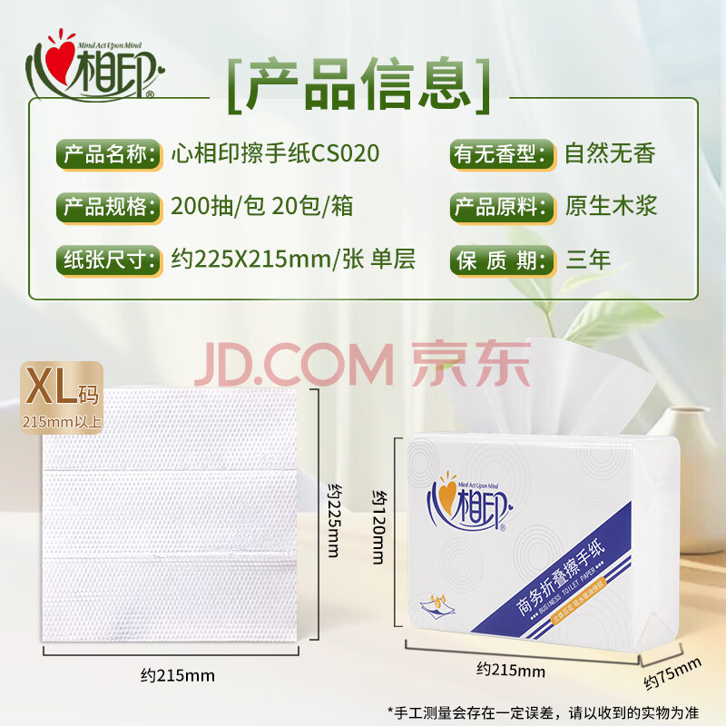 商品相册:心相印擦手纸1层200抽*20包卫生间商用檫手纸洗手间干手酒店商场用CS020第