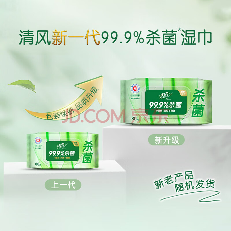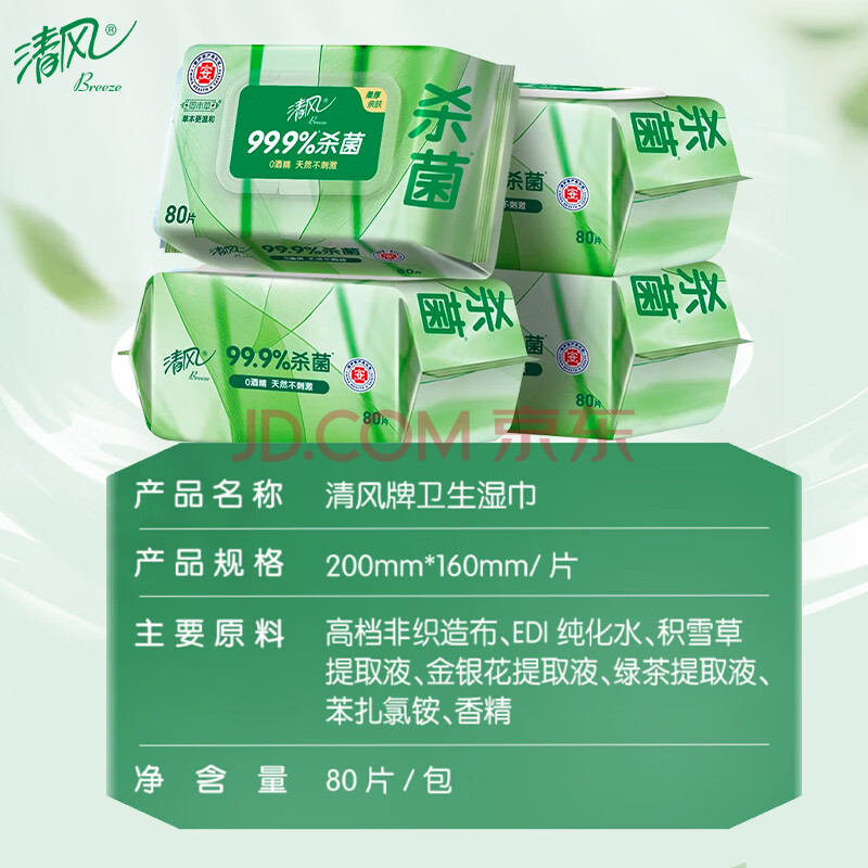 商品相册:清风御本草杀菌湿巾80片*4包 抽取式大包卫生湿纸巾 杀菌率99.9% 整箱第