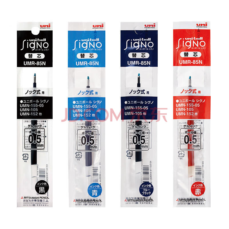 商品相册:uni三菱 uni-ball UMR-85N按动笔芯0.5mm中性笔黑色替芯 适用签字笔UMN-155 105 152 207等系列 10支第