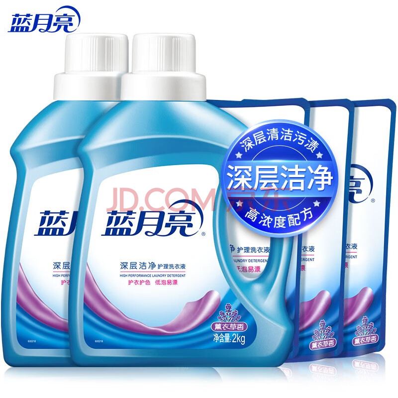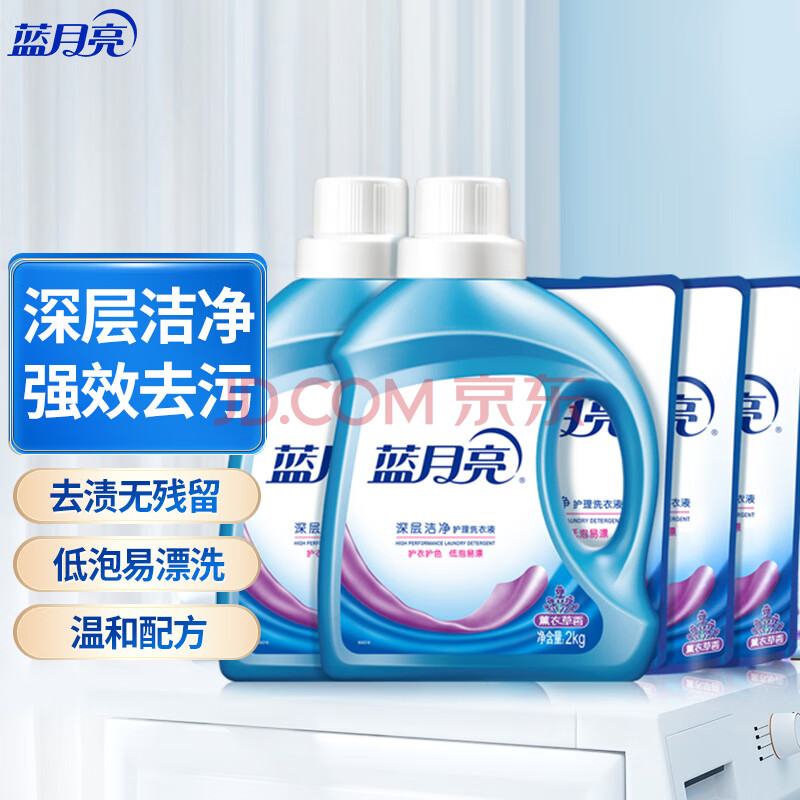 商品相册:蓝月亮 深层洁净洗衣液 薰衣草香 2kg*2瓶+1kg*3袋 高效除螨 强效去污第
