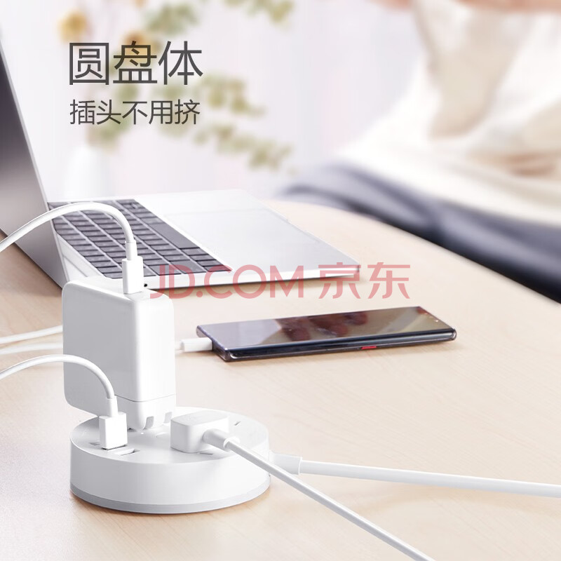 商品相册:公牛(BULL)插座/插线板/插排/排插/宿舍家用拖线板 圆形插座 3usb接口+3孔总控 1.8米GN-R203U第