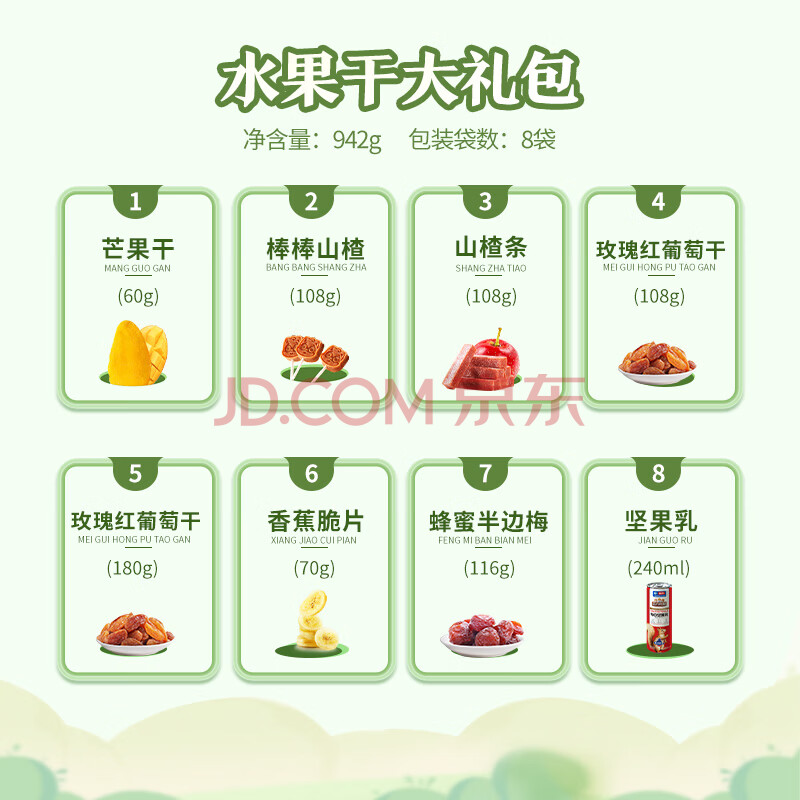 商品相册:三只松鼠水果联盟工坊大礼包942g/8件 芒果干山楂葡萄干水果干零食礼第