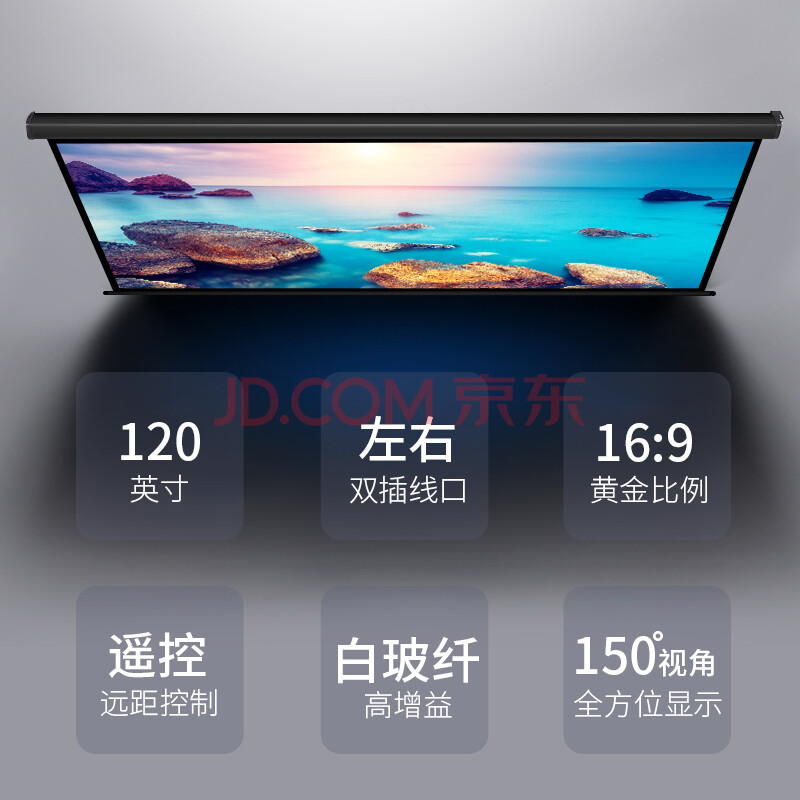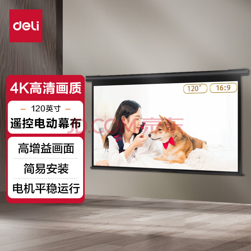商品相册:得力(deli)120英寸16:9白玻纤遥控电动投影幕布 适配坚果极米当贝 投影仪高清白玻纤幕布50451【包安装服务】第