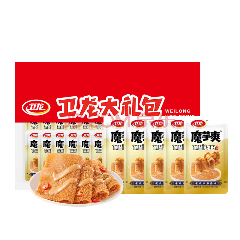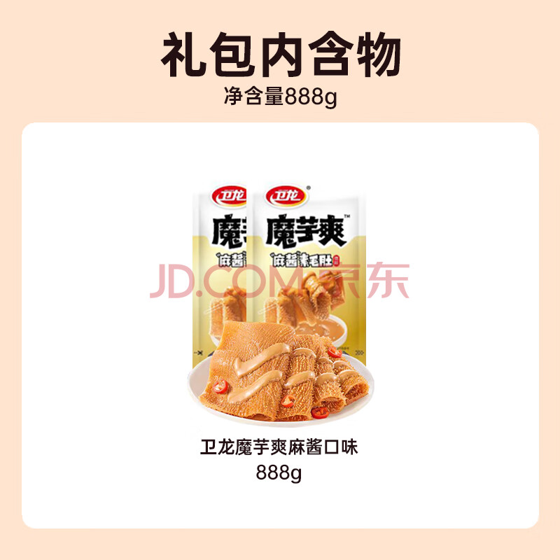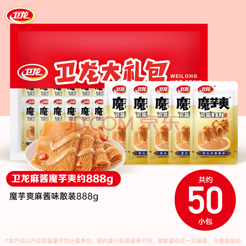 商品相册:卫龙魔芋爽辣条休闲小零食麻酱素毛肚魔芋爽大礼包888g便携约50小包第