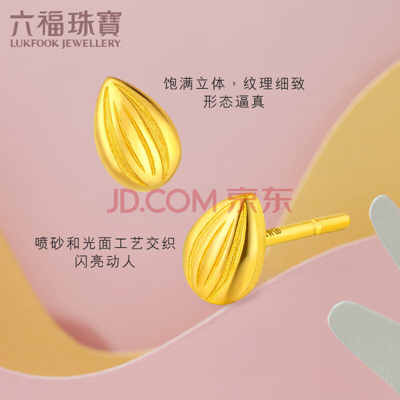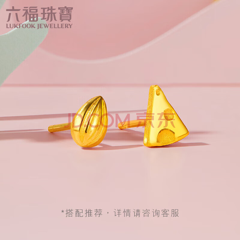 商品相册:六福珠宝 足金瓜子(单只)黄金耳钉耳环 计价 约0.54克第
