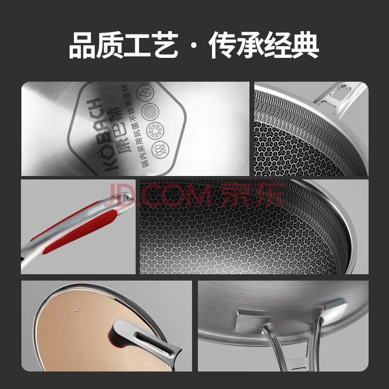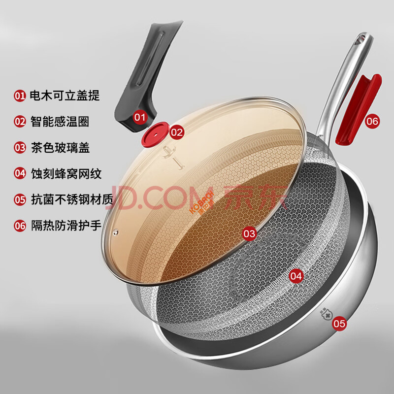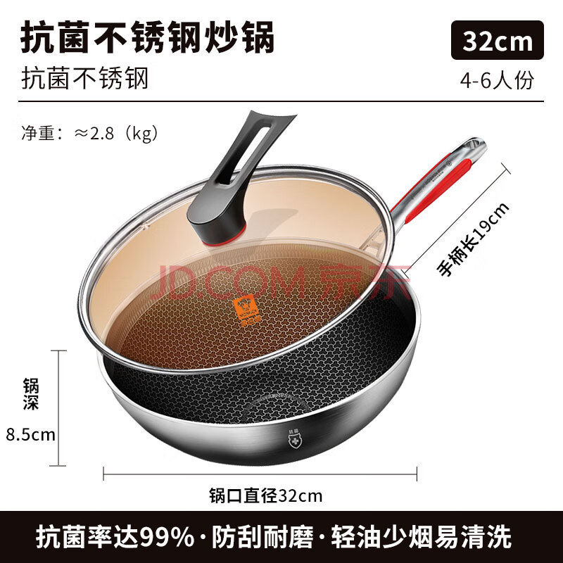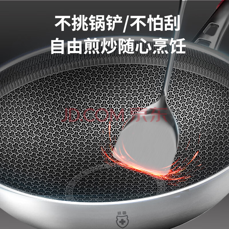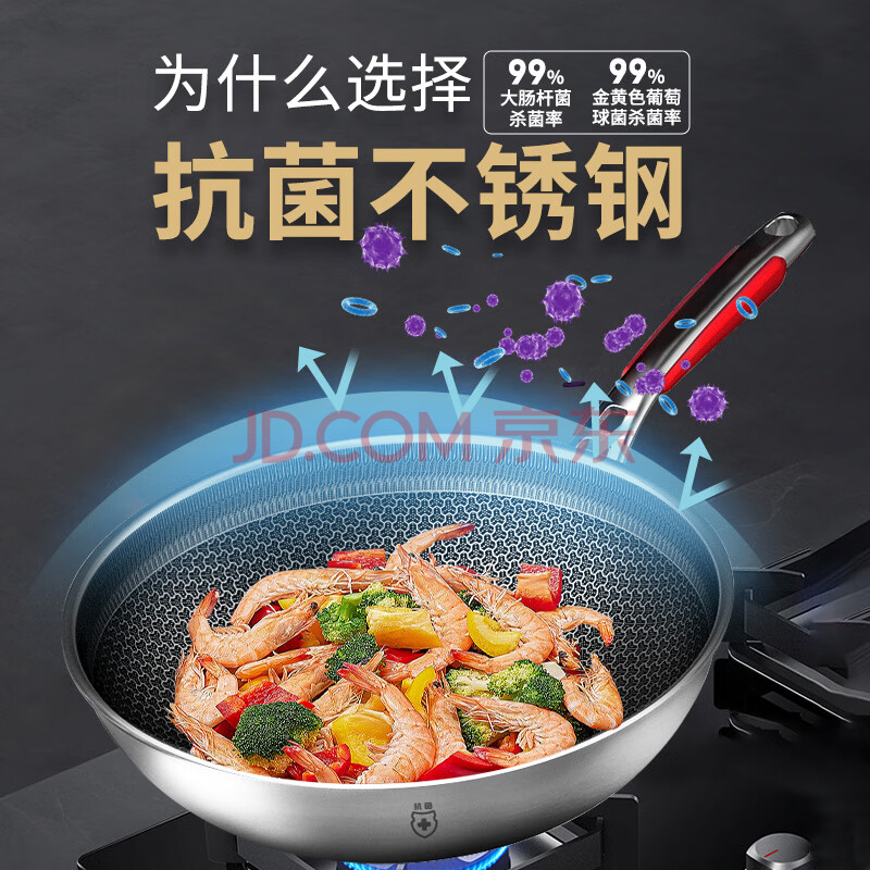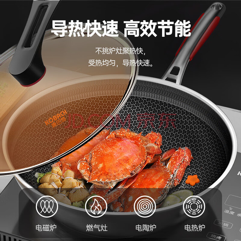 商品相册:康巴赫炒锅不粘锅抗菌不锈钢炒菜锅32cm蜂窝锅电磁炉燃气灶通用第