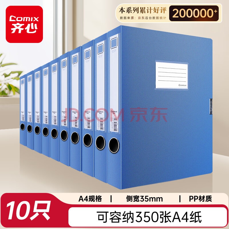 商品相册:齐心(COMIX)10个装35mm文件盒档案盒资料盒加厚办公财务文件资料票据试卷发票收纳绯蓝色办公用品EA1001-10第