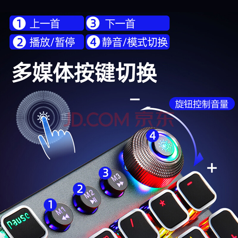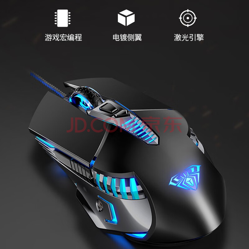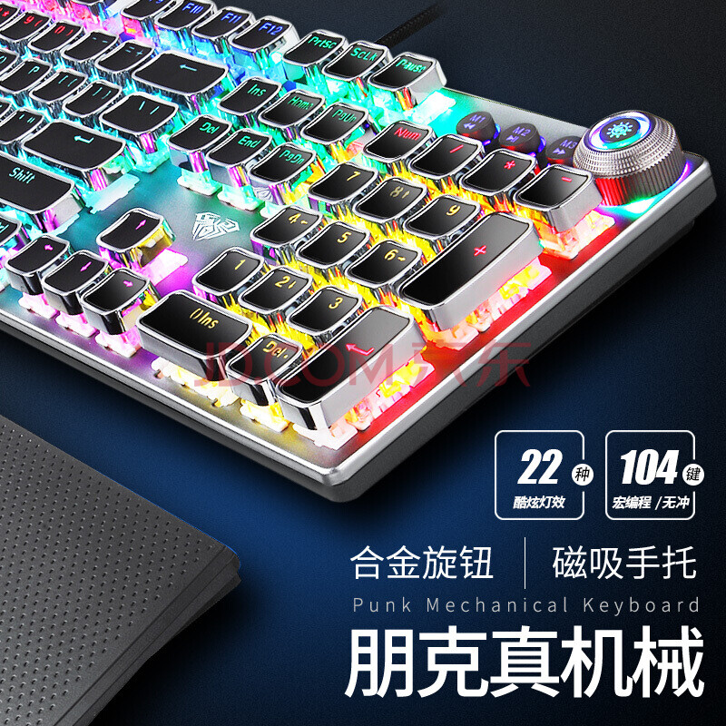 商品相册:狼蛛(AULA)T500机械键盘鼠标套装 有线键鼠套装 游戏办公电脑键盘 蒸汽朋克 宏编程 带手托 黑色 青轴第