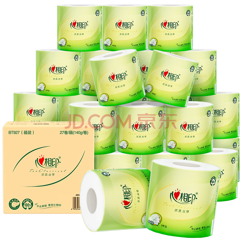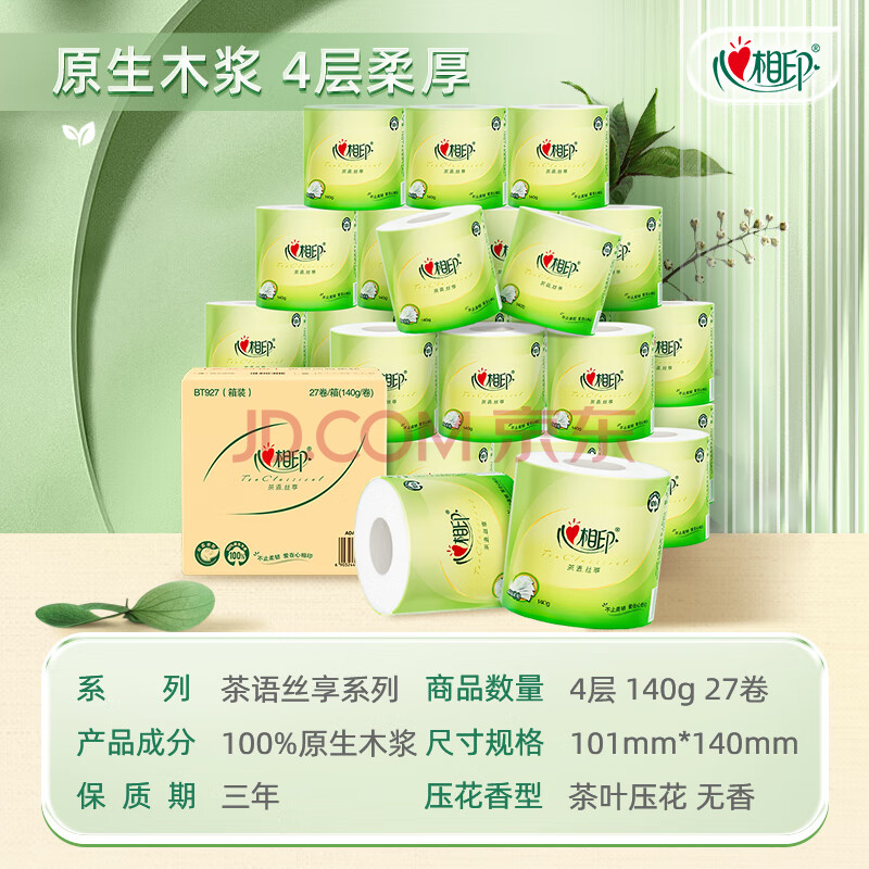 商品相册:心相印有芯卷纸 卫生纸巾 茶语丝享 4层140g*27卷 整箱(包装新老交替)第