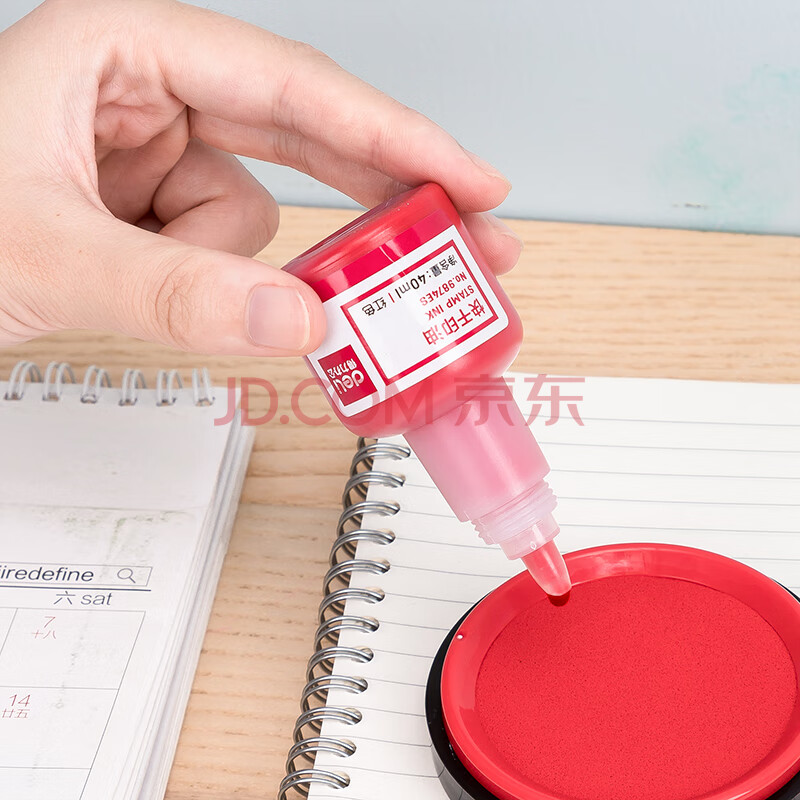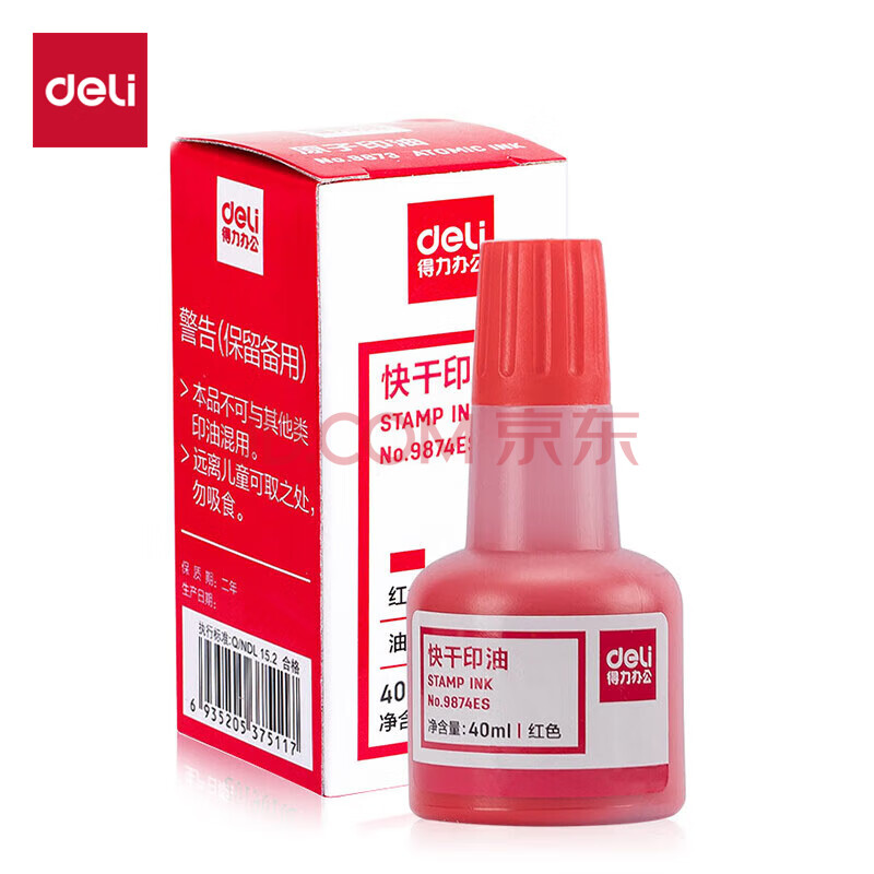 商品相册:得力(deli)40ml快干印油印泥 财务印油 公章印油 办公印油 红色9874ES第