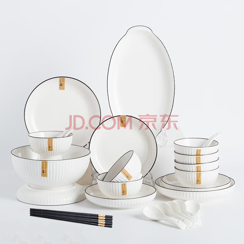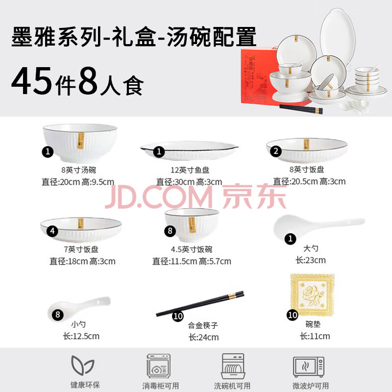 商品相册:浩雅釉下彩景德镇陶瓷餐具碗碟套装陶瓷碗具陶瓷盘子乔迁45头墨雅第