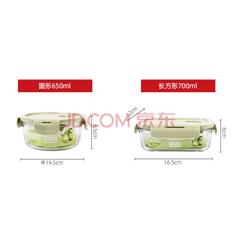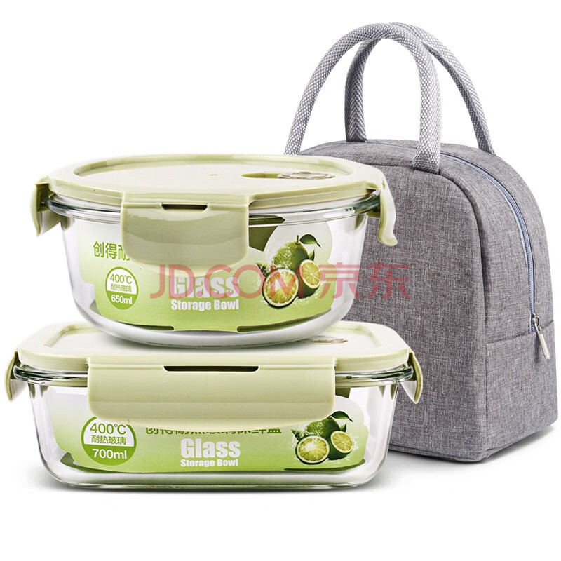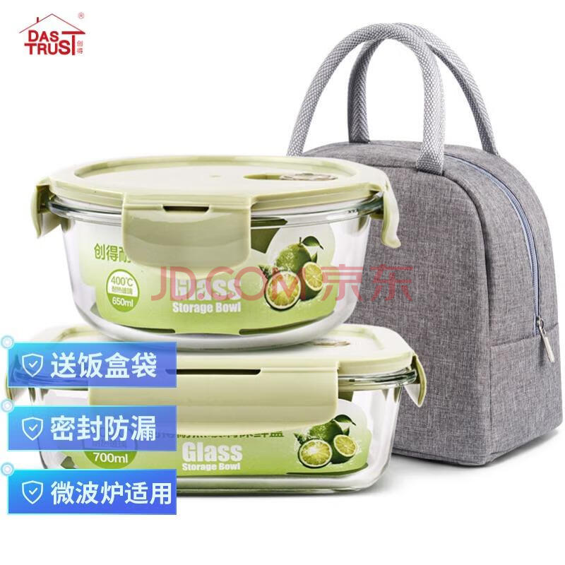 商品相册:创得 耐热玻璃保鲜盒 微波炉烤箱饭盒上班族便当盒 圆650+长700ml+包第