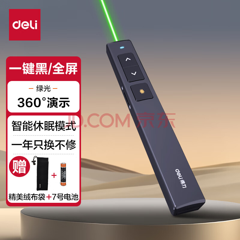 商品相册:得力(deli)绿光激光笔 百米远控翻页笔演讲笔 PPT翻页笔 投影笔激光翻页笔无线演示翻页器 黑色2802G第