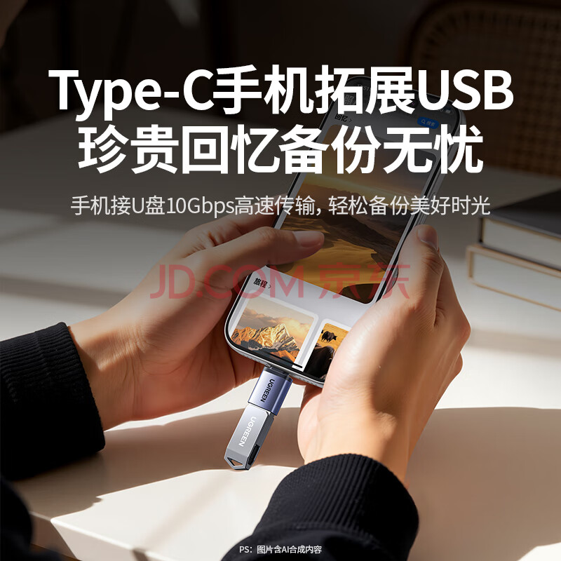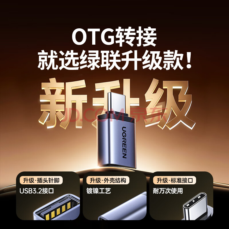 商品相册:绿联Type-C转换USB3.2转接头OTG适用苹果17/16/15华为安卓手机充电数据线U盘平板笔记本电脑耳机键鼠车第