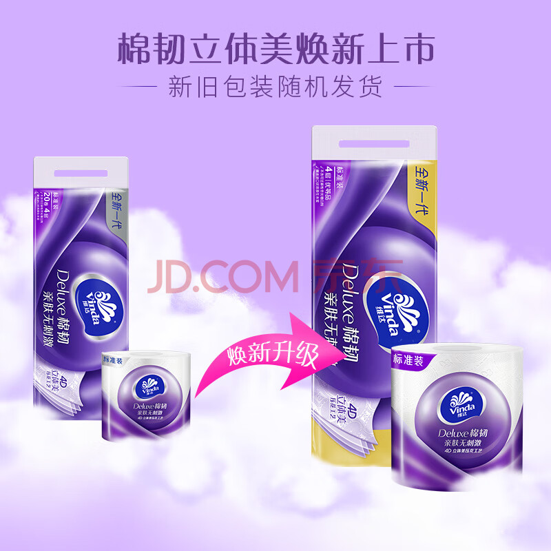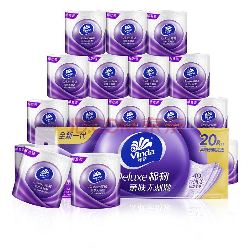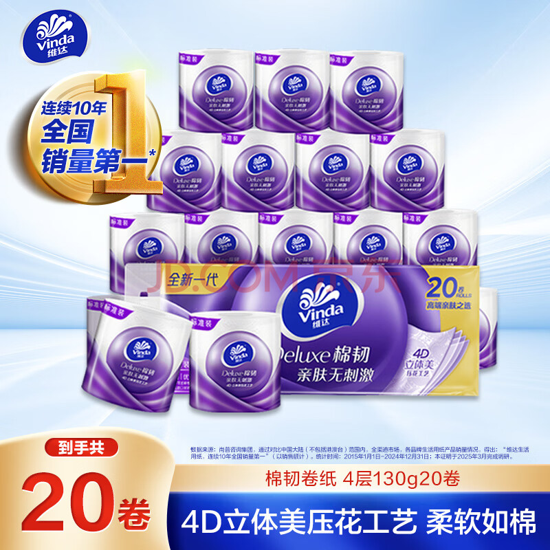 商品相册:维达(Vinda)有芯卷纸 棉韧4层130克*20卷 亲肤无刺激 卫生纸 卷筒纸纸巾 厕纸第