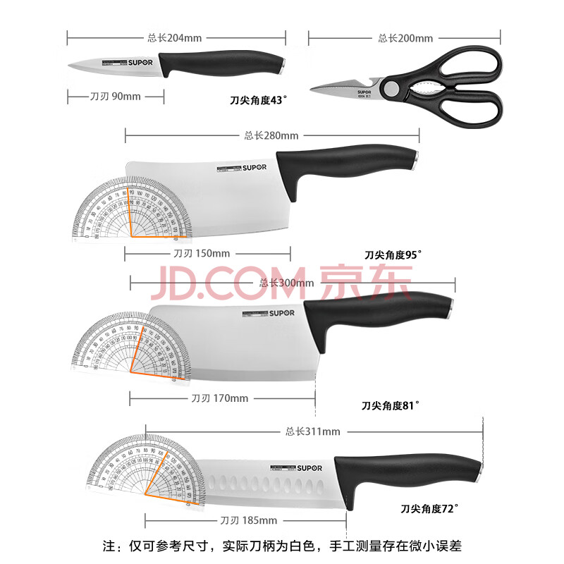 商品相册:苏泊尔SUPOR 刀具6件套套刀水果刀切菜刀厨房刀具套装简约白 TK1937E第1张/共6