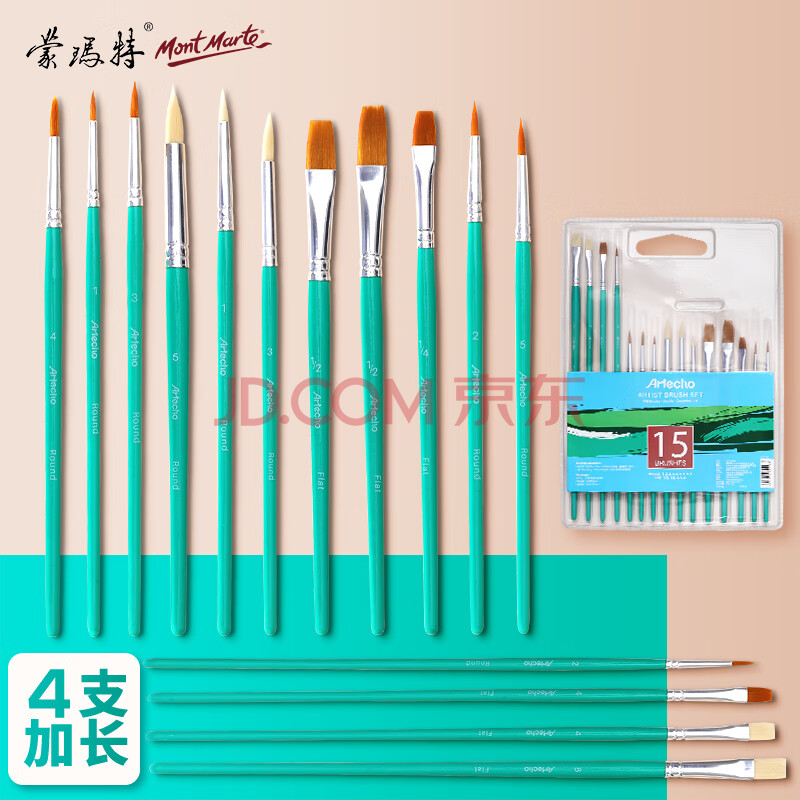 商品相册:蒙玛特(Mont Marte)15支装水粉笔 水彩颜料画画笔初学丙烯油画勾线笔 美术儿童学生绘画笔排笔套装ATO-AB1507 速写 马克笔绘画第