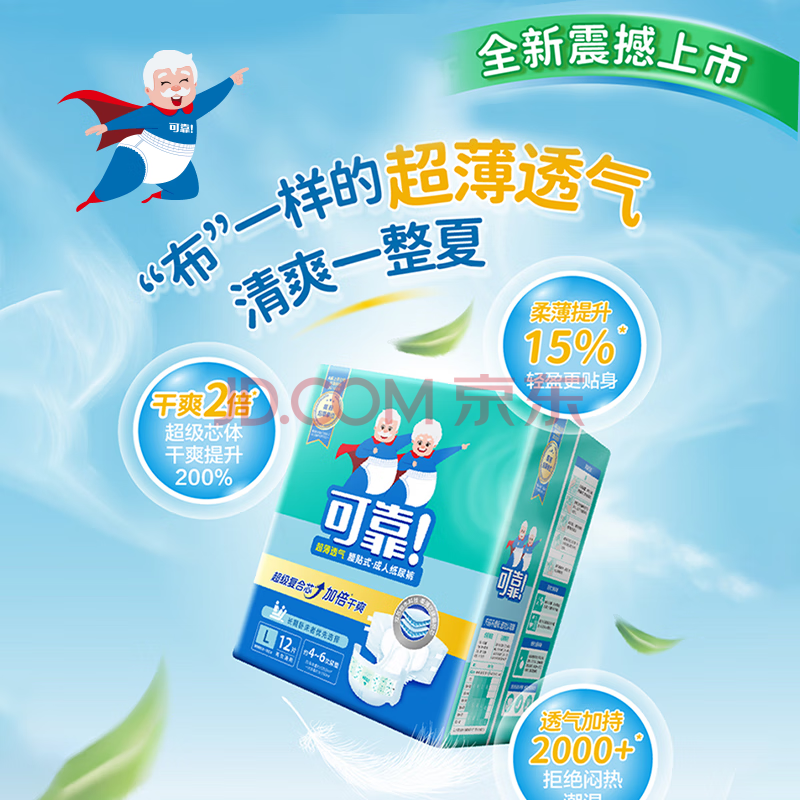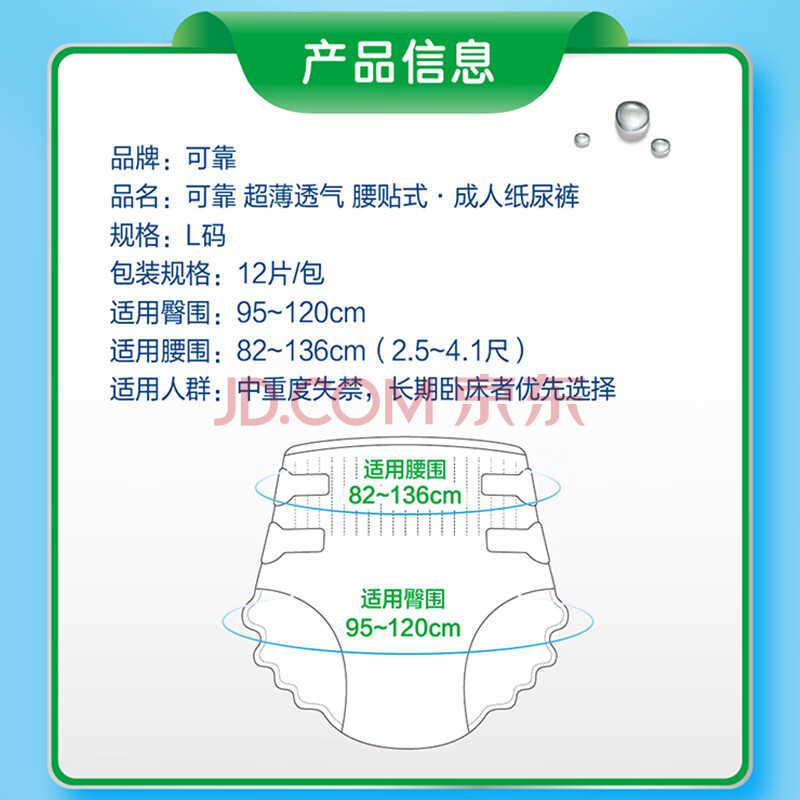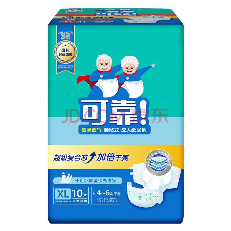 商品相册:可靠(COCO)超薄透气成人纸尿裤XL10片(臀围≥110cm)老年人孕产妇尿不湿第