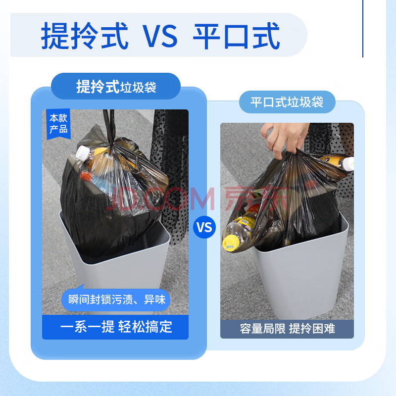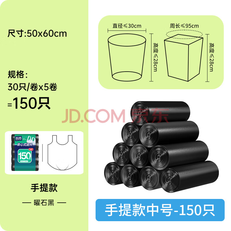 商品相册:苏诺背心式垃圾袋黑色50*60cm*150只单层0.7丝点断式全新料家用办公第