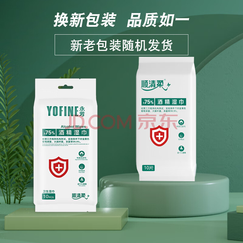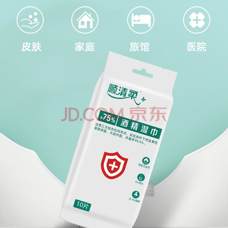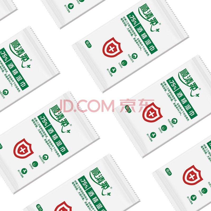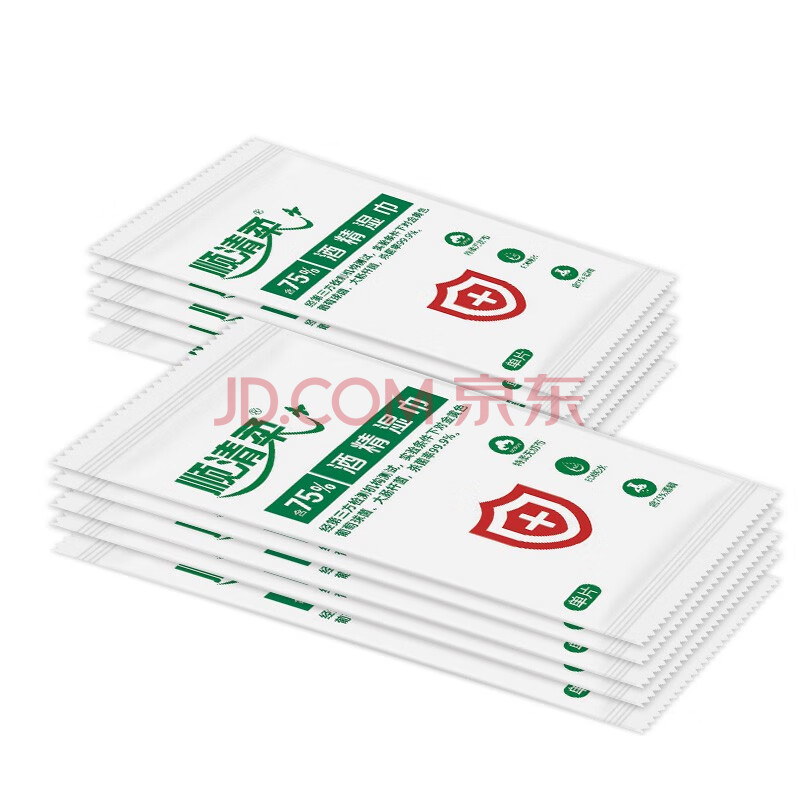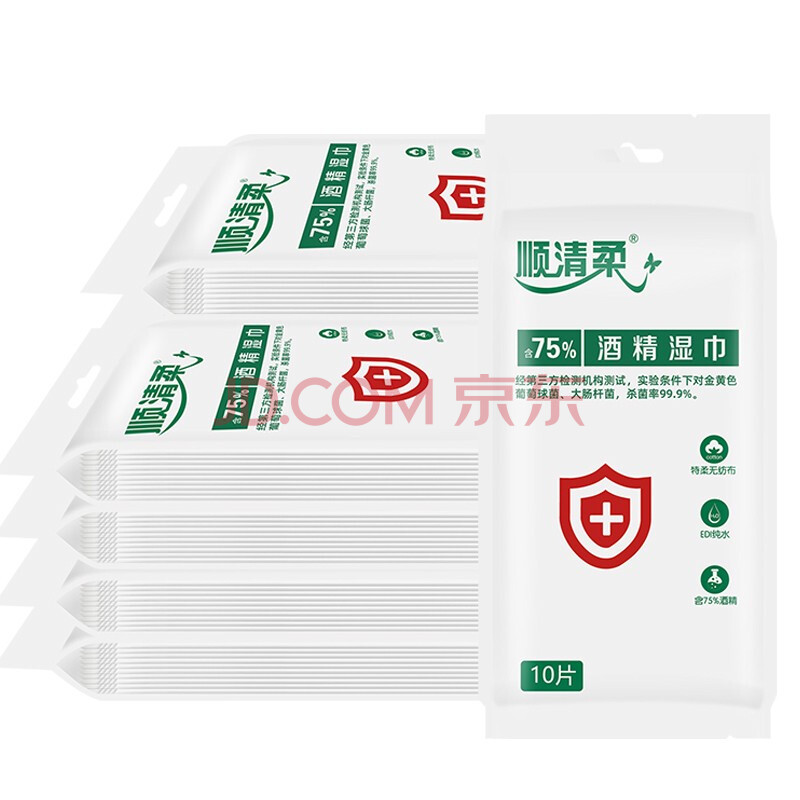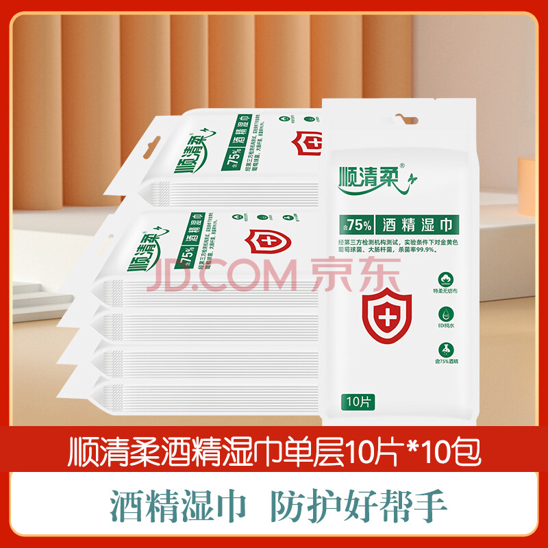 商品相册:顺清柔酒精湿巾10片*10包 单片独立包装便携卫生湿巾酒精棉片 无香提装第