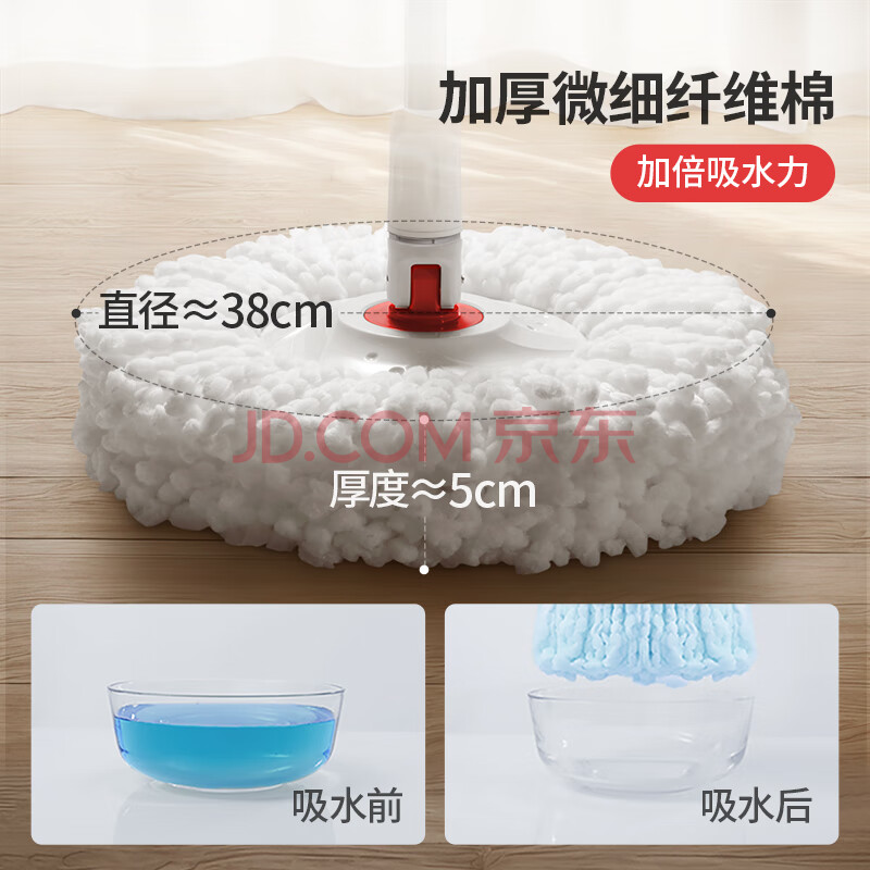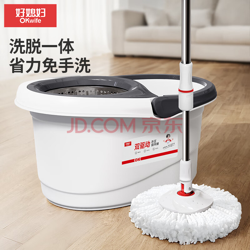 商品相册:好媳妇旋转拖把38cm2个棉头 液压杆双驱动免手洗家用一拖净不锈钢篮第