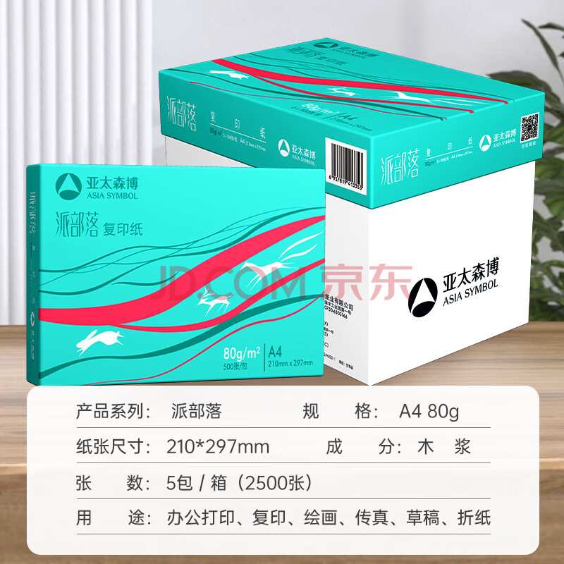 商品相册:亚太森博派部落A4打印纸 80g 500张*5包 不卡纸 双面复印纸 高性价比 整箱2500张【店铺销冠】第