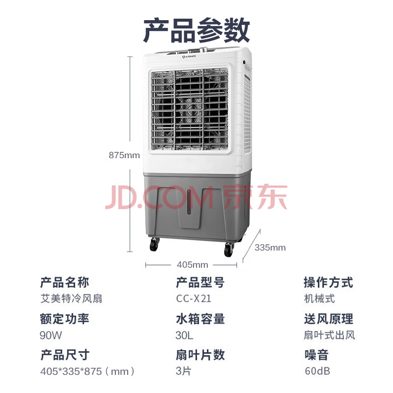 商品相册:艾美特(AIRMATE)冷风扇空调扇制冷风机商用工业水冷空调加冰块超强风车间可移动水冷扇30L超大面积水冷机 CC-X21第