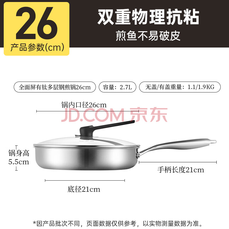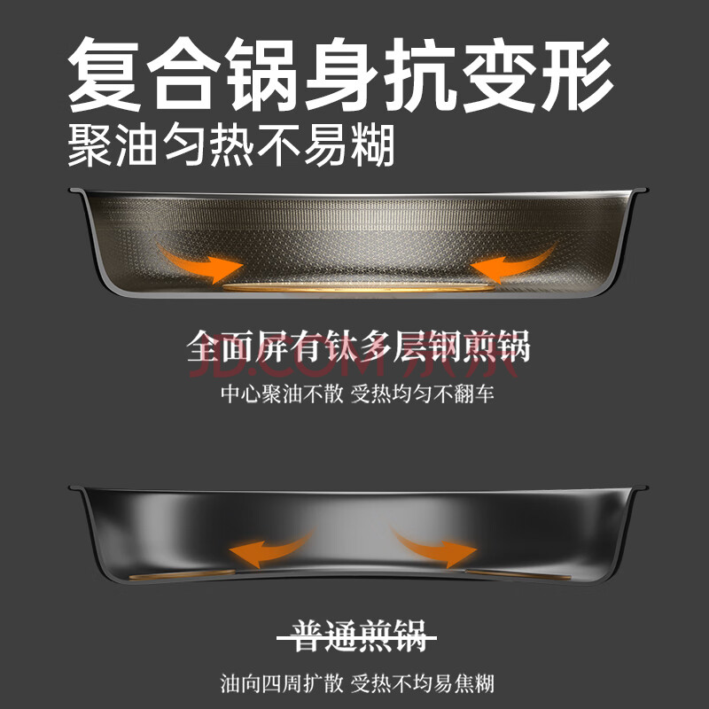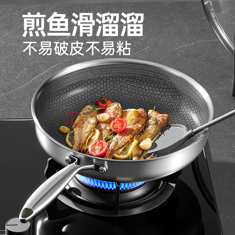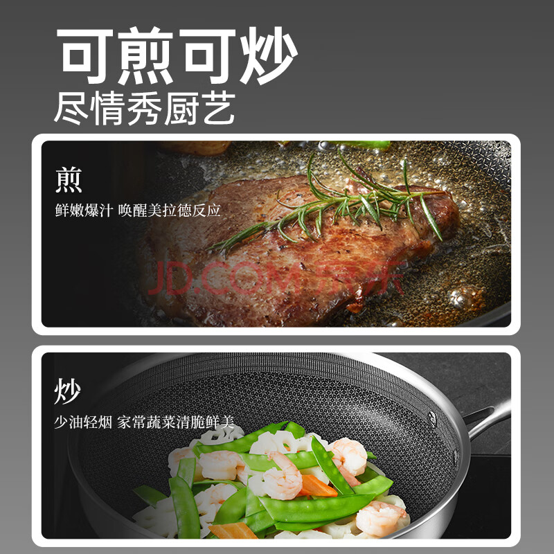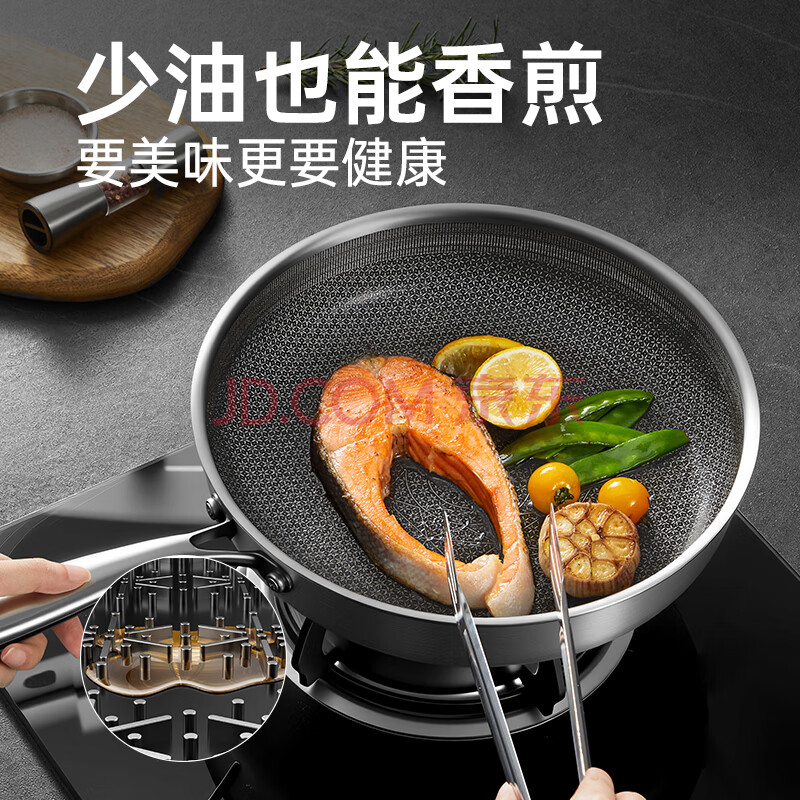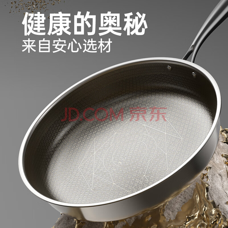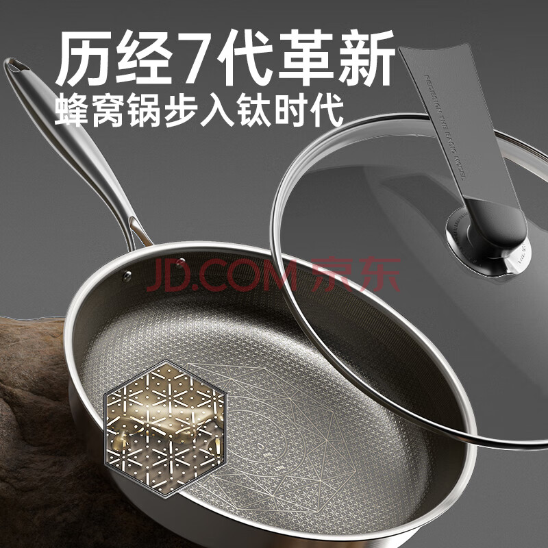 商品相册:炊大皇 有钛平底锅 304不锈钢煎锅不粘锅可用铁铲蜂窝纹电磁炉煎锅26cm第