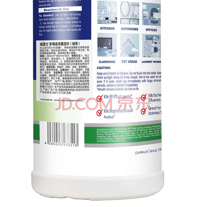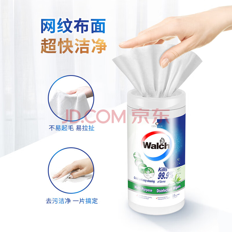商品相册:威露士多用途杀菌湿巾 绿茶35片*1桶 快速清洁 有效杀菌99.9%第