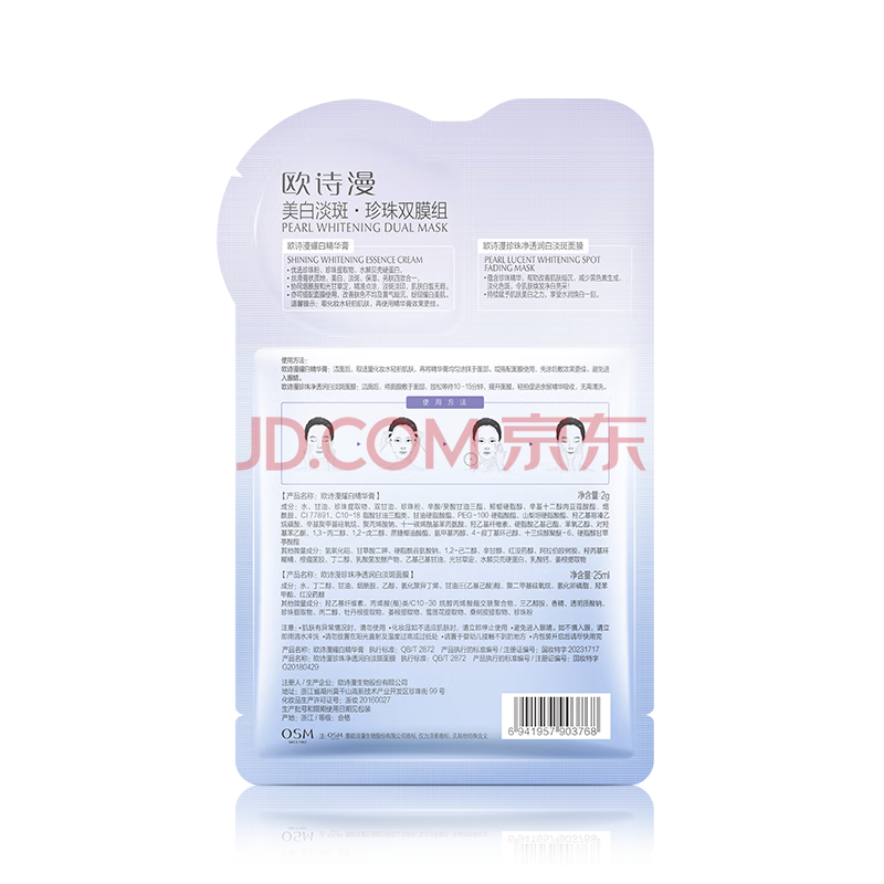 商品相册:欧诗漫(OSM)珍珠美白面膜金榜补水保湿淡斑痘印去黄提亮5片/盒 生日礼物第