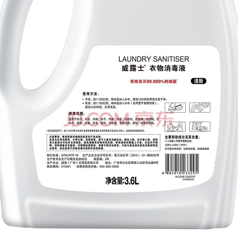 商品相册:威露士衣物消毒液清新3.6L 杀菌99.9%除螨内衣衣物除菌液 可配洗衣液第
