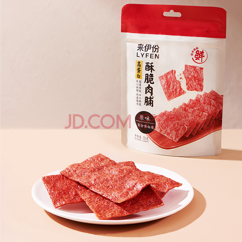 商品相册:来伊份高蛋白酥脆肉片脯原味35g靖江风味薯片鸡肉猪肉干混合休闲零食第