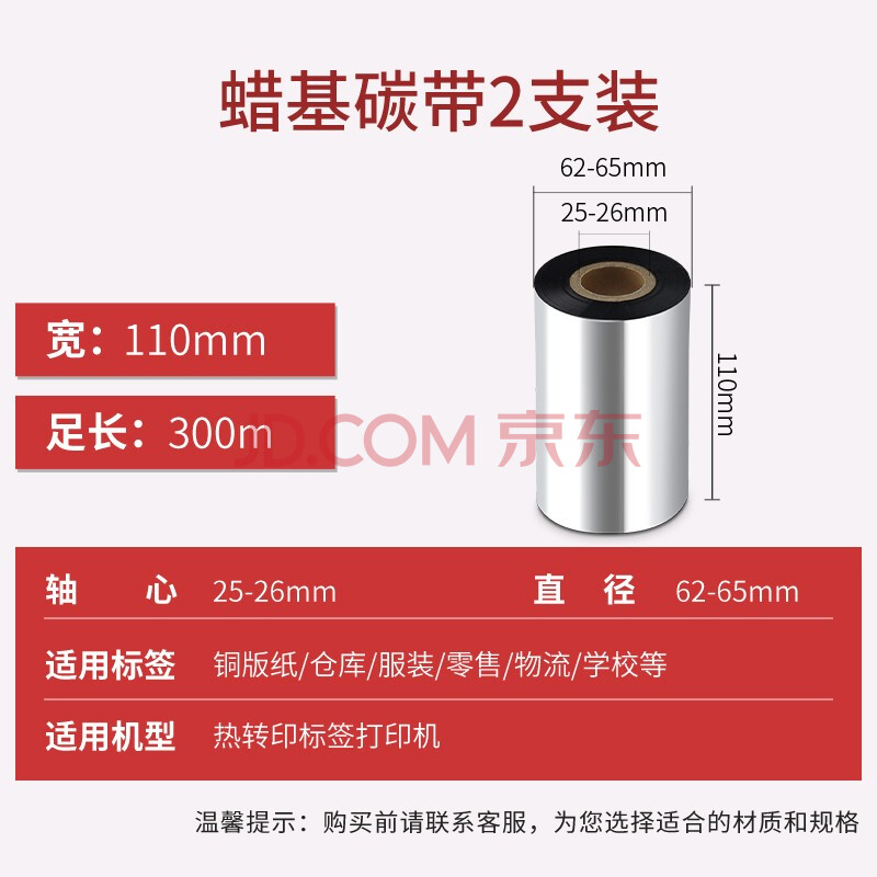 商品相册:得印(befon)002碳带2卷装 110mm*300m单轴碳带蜡基碳带 条码打印机专用色带 热转印标签打印机通用碳带第