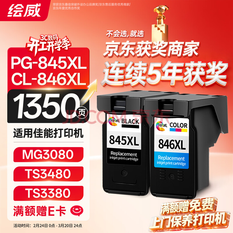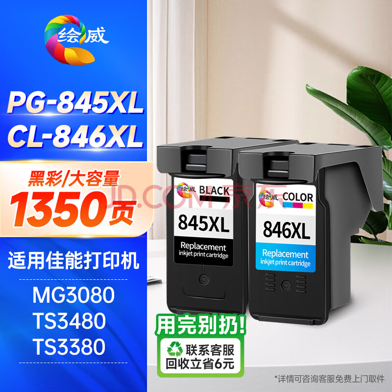 商品相册:绘威PG-845/CL-846墨盒 黑色彩色适用佳能MG3080 MG3480 MG2400 MG2580S TS208 TS3380 3180 3480打印机墨盒第