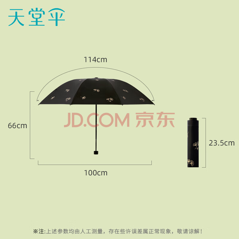 商品相册:天堂 防紫外线晴雨伞三折 雨伞黑胶防晒太阳伞遮阳晴雨伞 黑色第