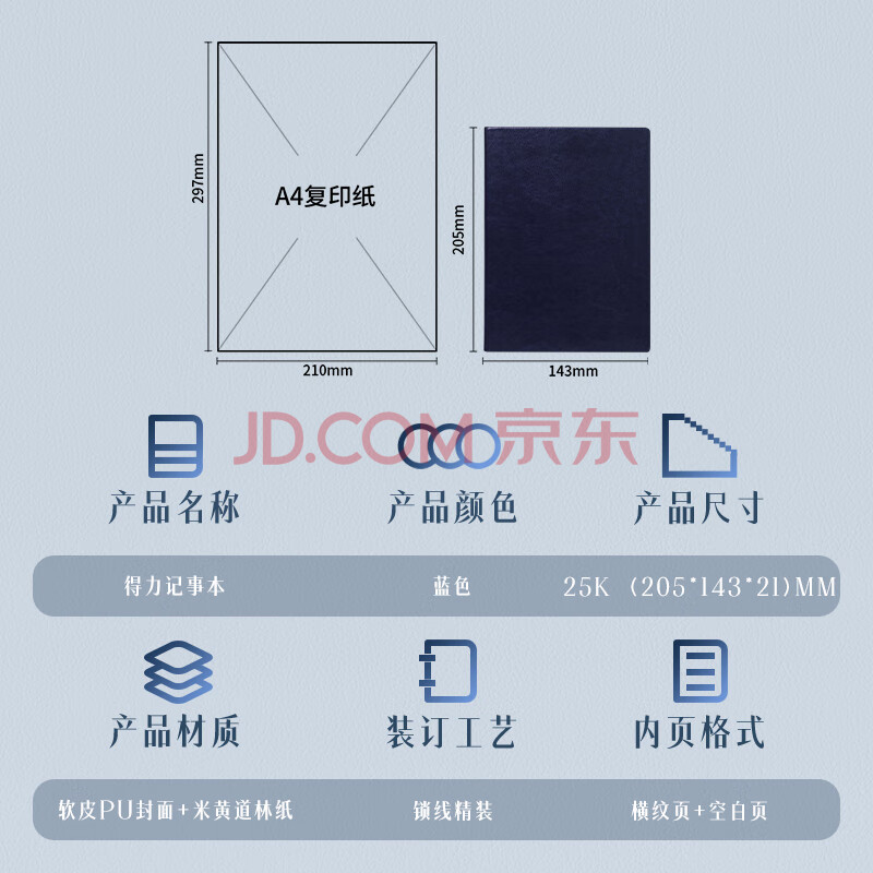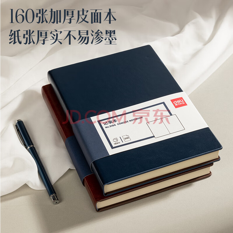 商品相册:得力(deli)可定制皮面本25K160张笔记本加厚商务日记本会议记事本子办公用品3186蓝色第