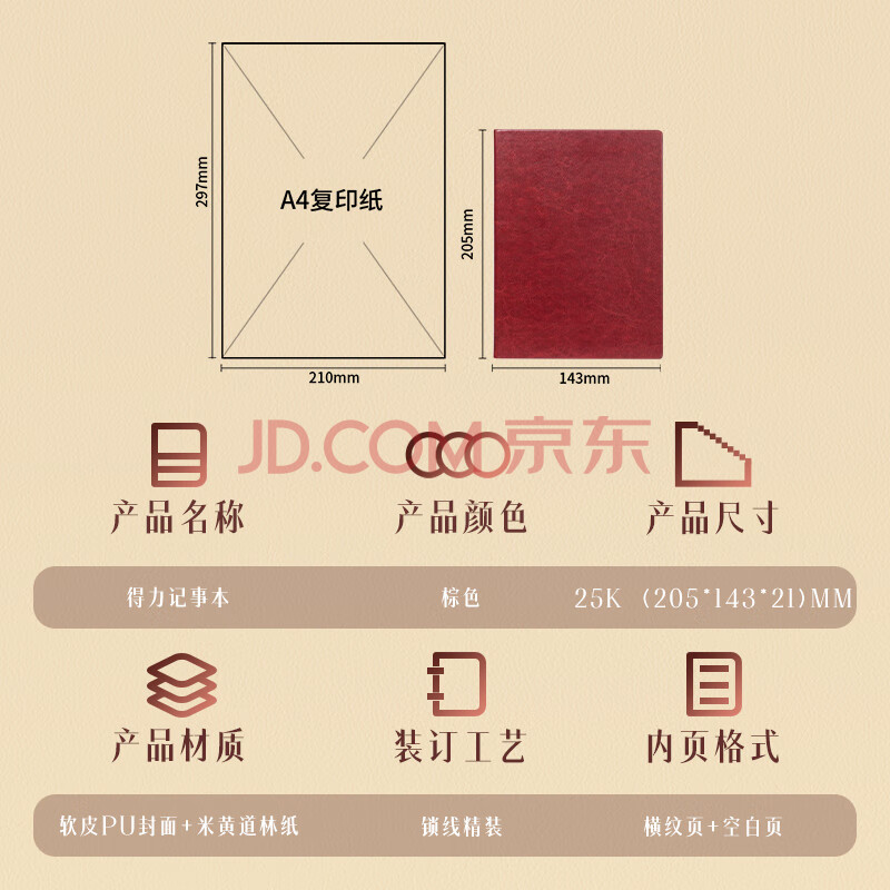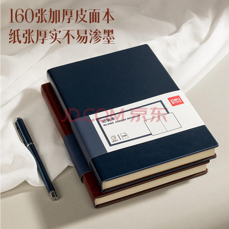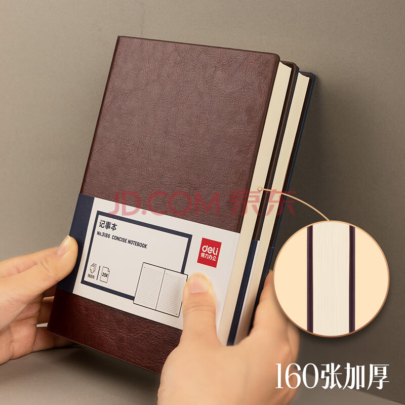 商品相册:得力(deli)可定制皮面本25K160张笔记本加厚商务日记本会议记事本子办公用品棕色3186第
